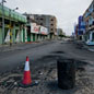 Die Kämpfe um die Straße zum Hafen nehmen im Laufe des Tages an Heftigkeit zu. Über den Häusern ballen sich Rauchwolken. Ich sitze im Wagen von Ahmed, einem gemütlichen Mann mit feisten Wangen. Er ist Mitarbeiter des Medienzentrums der Rebellen und meist der Einzige, der die Welt mit Nachrichten aus Misurata versorgt. Ahmed, eigentlich Personalleiter der Molkerei, ist Reuters, CNN und BBC. Er zeigt mir die Stadt, über deren Straßen frische Aufschüttungen laufen, hohe Sandwälle, auf denen die Fahne des neuen Libyens weht. Die Rebellen haben alle 150 Meter Kontrollpunkte eingerichtet, Container mit Fernseher drin dienen als Unterstände. Es gibt dort meist keine Waffen, nur Stahlnägel im Sand, um Reifen platzen zu lassen. So geht es stoßweise durch den Verkehr, in einem Zustand kontrollierter Panik. Mehrfach am Tag verlegen die Einwohner ihre Familien, wenn sie das Gefühl haben, es sei in einem anderen Quartier etwas sicherer. Heftig wie in einem Wasserglas schwappen die Automassen innerhalb des Belagerungsringes hin und her.
