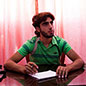 Ahmed, der Mann mit Downsyndrom, setzt sich auf den Boden und ahmt das Tippen einer Laptop-Tastatur nach. Ein FSA-Kämpfer zielt aus Langeweile mit einer Kalaschnikow auf ihn, Ahmed hat keine Angst, grient die Aktivistenrunde. Doch Ahmed duckt sich weg. Er bedeckt den Kopf mit einer Hand. Sie geben Ahmed die Waffe, er richtet den Lauf auf den einen, auf den anderen, dann bemerken sie, dass das Gewehr entsichert ist. Rasch nimmt Anwar ihn die Waffe ab.