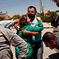 Den Jungen übergibt er dem Fahrer der Ambulanz, der an die türkische Grenze eilt, zu einer Lücke im Zaun, wo auf der anderen Seite ein Krankenwagen des Nachbarstaates wartet. Die beiden Wagen fahren im Grenzstreifen aufeinander zu, bis sich die Stoßstangen fast berühren. Der Junge wird von einem Fahrzeug in das andere gehoben. Die Weiterbehandlung übernimmt ein türkisches Krankenhaus. Der kleine Grenzverkehr zwischen dem FSA-kontrollierten Syrien und der Türkei funktioniert immer reibungsloser. Unter Aufsicht des türkischen Militärs fahren Kolonnen von Reisebussen heran, auf geschotterten Seitenwegen, unter Umgehung der offiziellen Grenzübergänge. Hunderte Flüchtlinge verkehren so zwischen den Ländern. Die FSA versteckt sich an der Grenze nicht länger, sie zeigt Präsenz, hat von den Assad-Truppen aufgegebene Wachtposten übernommen und ihre neue Flagge auf die Masten gezogen. Nur die offiziellen Übergänge werden noch von der Regierung gehalten. Die FSA hat sie offenbar vom Umland weitgehend abgeschnitten. Nur über Luftbrücken kann sie die Regierung versorgen.