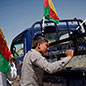 Das Land ist in viele kleine Parzellen zersprungen, Risse tun sich auf, zwischen den Dörfern, durch die Dörfer. Keine Kriegspartei hat die Übersicht. Das Telefon von Abu Anas klingelt, einer seiner Checkpoints vor der Stadt. Die Männer berichten, im Niemandsland zwischen FSA und Militärflughafen hätten Panzer einen Mini-Bus beschossen, vier Kilometer vor der Stadt. Niemand traut sich zu den Leichen und den Verletzten. Abu Anas bricht auf, leiht sich einen Pritschenwagen, holt das von der Straße, was vom Busfahrer noch übrig ist. Ein blutiger Torso. Den Kopf kann er in der Hast nicht finden. Eine zweite Leiche, den Schädel zur Hälfte eingedrückt. Der Panzer hatte frontal auf die Windschutzscheibe gezielt. Zehn Lehrer aus Aleppo waren mit dem Mini-Bus auf dem Rückweg gewesen, sie hatten Schulprüfungen in der Nachbarstadt Afrin abgenommen. Dort herrscht noch Assad und die mit ihm verbündete Kurdenpartei PKK. Eine weitere Komplikation in der Region. Ein bewaffneter Konvoi aus zehn Fahrzeugen mit PKK-Fahnen nähert sich Azaz. Der Fahrer war Kurde. Sie wollen seine Leiche mitnehmen - und klären, wer der Verantwortliche für seinen Tod ist.