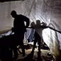 Es bleibt Ibrahim nicht viel Zeit, um sich am wiedergewonnenen Leben zu freuen. Das Röntgenbild hängt im Zelt als Trophäe über seiner Schlafmatte. Am Morgen nach dem Unfall trägt er eine Armschlinge links, mit zugeschwollenen Augen schaut er auf die streikende Belegschaft. Sieben Mann schreien, rufen, treten in den Staub. „So machen wir nicht weiter“, rafft sich Ibrahim auf. „Wir haben seit einer Woche kein Geld bekommen.“ Er und Nasir sind verantwortlich für die Jungs der Tagschicht. Im Halbkreis stehen sie um den Verletzten. Sie alle arbeiten aus den unterschiedlichsten Gründen hier. Zwei verstecken sich vor ihren Vätern, weil diese ihnen nicht erlauben, das Mädchen ihrer Träume zu heiraten. Immer wieder rufen die Mütter weinend auf ihren Handys an. Einer kam vor zwei Wochen aus dem Knast, der Computerfreak, der sich in das System eines palästinensischen Mobilfunkbetreibers gehackt hatte. Der Bärtige ist vor der Hamas davongelaufen, weil er eines ihrer Mitglieder beleidigte. Es gibt für ihn keinen sicheren Ort, sagt er. „Wenn sie kommen, verschwinde ich in den Tunneln.“ Viele der Jungs in Rafah haben vor der Blockade stundenweise im Waffenschmuggel gearbeitet. 300 Dollar für zwei Stunden, sagt einer, habe die Hamas bezahlt. „Aber sehr riskant.“ Dann ist da noch „Nems“, wie sie ihn nennen. Sein Stiefvater brachte ihn zum Schacht, weil er sich weigerte, zur Schule zu gehen. Nems ist 14, nur die leichtesten Arbeiten lassen sie ihn verrichten, versichern alle. Viele Schulkinder verdingen sich in den Tunneln. Flink wie kein anderer bewegt sich der Kleine durch die Gänge. Vornüber gebeugt stößt er sich ab, mit beiden Beinen gleichzeitig, und hoppelt wie ein Kaninchen im Erdloch.