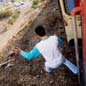 Der Zug rumpelt dicht am Haus von Zeynel Mah, 28, vorbei. Gestern ist der Mann, hager, hohlwangig, nach zwei Wochen aus dem Irak zurückgekehrt. Der Kühler seines Trucks ist eingebeult. „Auffahrunfall“, sagt er. „Im Konvoi schlug weiter vorne eine Granate ein, da habe ich nicht aufgepasst.“ Er spritzt den Wagen ab, seine ganze Existenz. Der sechsjährige Sohn poliert die Radkappen. 90 Prozent der Kleinstädter leben von den Transporten Richtung Bagdad. Es ist üblich, dass sich drei, vier Familien zusammentun, um einen Lkw zu kaufen. Mah bringt Coca Cola ins Kriegsgebiet, 600 Dollar verdient er dabei. Immer wieder verlieren Fahrer dabei ihr Leben, werden andere als Geiseln genommen. Es gibt aber keine andere Einkommensquelle in Nusaybin, seit die Baumwollpreise um die Hälfte fielen. Sein Cousin, erzählte Mah, hätte neulich auf dem Rückweg eine Panne gehabt, ausgestiegen sei er, um zu reparieren. Als er wieder einstieg und den Zündschlüssel drehte, explodierte der Wagen. Morgen ist Mah erneut auf der Piste. Mit glänzendem Volvo.