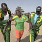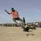 Gespielt, geworfen und gerannt wird, wenn der Hitzschlag nicht sofort droht, morgens und nachmittags. Bis zu 45 Grad brennen auf den Sand. Die Sportler dösen tagsüber in „olympischen Dörfern“, kleinen Komplexen aus Lehmrundhütten, vor denen die Mannschaften auf Bastmatten schlafen. Im Schatten eines Baumes hält der Fußballcoach von Wunrok Lagebesprechung mit seinem Team. Im Finale werden sie auf Turalei treffen. „Wir spielen dieses Mal mit einem Lederball. Da ist Luft drin, Jungs. Der verhält sich anders als unsere Bälle.“ Wunroks Bälle sind meist aus alten Socken und mit Lumpen gefüllt. Die Spieler lauschen seinem Vortrag konzentriert. Alle aus Wunrok sind sie gegen das Verbot ihrer Stadt hierhergekommen. 150 Blockadebrecher. Wunrok lag noch vor drei Jahren mit den Nachbarkreisen im Krieg. Der Konflikt köchelt weiter. Jetzt, zu den Spielen, müht sich die Jugend, die alten Gräben zu überwinden. „Wir sind die beste Mannschaft und wollen das beweisen!“ Das ist der Sportgeist, den Acuil Banggol heraufbeschwört: Solange sie spielen, schießen sie nicht.