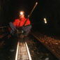 Feldmeier ist der Hausmeister der Höhe, Johannes Schöpf der der Tiefe. Wenn auf dem Gipfel alles schläft, die letzte Soap-Sendung in Buchwiesers Fernseher erloschen ist, rumpelt der 48-jährige Schöpf wie eine Sagengestalt aus alten Rittertagen, mit funkensprühendem Schweif und gereckter Lanze, zu Tal. Sein Arbeitsplatz ist der Tunnel der Zugspitzbahn. Er sitzt auf einer Schneeschaufel, Stiel nach vorne, Beine angezogen, und rast auf den Gleisen der Zahnstange durch fünf Kilometer Dunkelheit. Ein Stück Autoreifen am linken Fuß ist seine Bremse. Bei Spitzengeschwindigkeiten von 70 Stundenkilometern ist sie lebensnotwendig. Schöpf ist Streckengänger. Ein im Tal bereits seit langem ausgestorbener Beruf. Jeden Morgen zwischen zwei und vier Uhr bricht er von seinem kleinen Zimmer im Schneefernerhaus, 300 Meter unter dem Gipfel, zur Kontrollfahrt auf. Er hat ein verwittertes Gesicht und ein jungenhaftes Lachen und muss im Tunnel mannshohe Schneeverwehungen beseitigen, Eispanzer von den Gleisen pickeln. Sträflingsarbeit wie sie nur noch in den Bergen möglich ist. Doch Johannes Schöpf ist kein Leidender in der kleinen Gemeinde der Gipfelbewohner. Er ist ihr wahrscheinlich glücklichstes Mitglied.