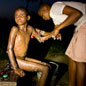 Fest glauben die Kinder bei ihrer Ankunft, dass sie das sind, was sie alle rufen. Dabei verstehen sie meist nicht, was genau das ist. Hexen. "Kannst du in der Nacht fliegen? Dann flieg!", provoziert Sam Ikpe-Itauma die Neuen. "Kannst du dich in eine Eidechse oder eine Kakerlake verwandeln? Nein? Wie kannst du dann eine Hexe sein?" Bei einigen Kindern behilft er sich mit einem Trick. Er gibt ihnen ein Stück Brot zum Kauen und sagt, sie sollten alles Böse in diesen Krumen legen. Er lässt sich dann das Brot auf seine Hand spucken und würgt es hinab. "Es ist vorbei", erklärt er den Kindern entschieden. Manchmal wirkt sie, diese Reinigungsprozedur. |