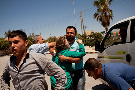 Den Jungen übergibt er dem Fahrer der Ambulanz, der an die türkische Grenze eilt, zu einer Lücke im Zaun, wo auf der anderen Seite ein Krankenwagen des Nachbarstaates wartet. Die beiden Wagen fahren im Grenzstreifen aufeinander zu, bis sich die Stoßstangen fast berühren. Der Junge wird von einem Fahrzeug in das andere gehoben. Die Weiterbehandlung übernimmt ein türkisches Krankenhaus. Der kleine Grenzverkehr zwischen dem FSA-kontrollierten Syrien und der Türkei funktioniert immer reibungsloser. Unter Aufsicht des türkischen Militärs fahren Kolonnen von Reisebussen heran, auf geschotterten Seitenwegen, unter Umgehung der offiziellen Grenzübergänge. Hunderte Flüchtlinge verkehren so zwischen den Ländern. Die FSA versteckt sich an der Grenze nicht länger, sie zeigt Präsenz, hat von den Assad-Truppen aufgegebene Wachtposten übernommen und ihre neue Flagge auf die Masten gezogen. Nur die offiziellen Übergänge werden noch von der Regierung gehalten. Die FSA hat sie offenbar vom Umland weitgehend abgeschnitten. Nur über Luftbrücken kann sie die Regierung versorgen.