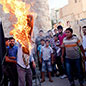 Wie sehr Anwar sich verändert hat seit dem Ausbruch der Revolution. Er sagt es von sich selber. Hager ist er geworden, hart, rastlos. Der Student, der mit Begeisterung Shakespeare zitiert, nie ein Gewehr in der Hand hatte, will jetzt immer dringender selbst auf die gegnerischen Schützen schießen. „Schweine“, sagt er. „Nicht wert, zu leben.“ Und wie sehr sich Azaz verändert hat. Wir fahren durch fast leere Straßen, in denen nur wenige Läden offen haben. Die Menschen, die sich auf die Wege wagen, schauen misstrauisch nach allen Seiten. Die Stadt versinkt in Müll. Das Provinznest ist zum Heerlager unterschiedlichster Rebellen aus Syrien geworden. Nur noch wenige tausend der einstigen Stadtbevölkerung verharren im Ort, der Rest ist geflohen in die umliegenden Dörfer, in die Türkei, nach Aleppo. Es ist alles so schnell gegangen, sagt Anwar. Er hat vor 14 Monaten die ersten Demonstrationen in Azaz organisiert, da waren sie zwei Dutzend.