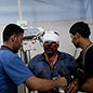 In der Klinik heben der Arzt und seine Helfer sorgenvoll die Köpfe. Sie operieren jetzt unentwegt. Wie taumelnd bewegen sie sich durch die Flure. Die Splitter der Helikopter-Geschosse jagen über die Häuser. Das Feldkrankenhaus in der Nachbarprovinz Idlib ist vor wenigen Tagen durch eine Helikopterattacke zerstört worden. „Der gefährlichste Ort der Stadt“, nennt Anwar das Lazarett. „Die Armee weiß, wo unsere Klinik ist. Sie hätte längst umziehen sollen.“ Viele Leichtverletzte kommen heute zur Erstversorgung, getroffen von oft nur millimetergroßen Metallklingen. Ein Kämpfer verzieht das Gesicht, als der Arzt eine Pinzette durch eine Fünf-Cent-große Wunde in der Wange führt. „Wir haben keinen CT Scan“, sagt der Doktor. „Also muss uns der Schmerz zum Splitter führen.“ Er dreht und wendet die Pinzette im Fleisch, Blut fließt aus der Wunde, über Wange und Kinn, dann hat er es. Ein winziges Körnchen. Er hält es vor die Augen des Verletzten. „Das ist nicht schön für den Patienten“, sagt der Arzt, sich die Handschuhe abstreifend. „Aber wir haben bei der Behandlung kein anderes Hilfsmittel als den Schmerz.“