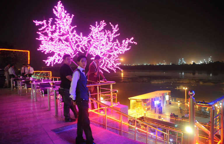 Nachdenklich steht al-Hage auf der Terrasse, die im Fluss vertäut ist. Als besondere Attraktion will er in wenigen Tagen ein Hochzeitspaar mit dem Boot hier anlanden lassen. "Einmalig in Bagdad", sagt er. Doch ist der Wasserstand zu niedrig. Dem Tigris geht seit Jahren das Wasser aus, weil Syrien und die Türkei ihm am Oberlauf zu viel entnehmen. Nur noch zwanzig Zentimeter hat das Club-Boot unterm Kiel. Das Ufer verschlammt, die Premiumlage droht zur Kloake zu werden. Die Millionenmetropole entlässt ihre Abwässer größtenteils ungeklärt vor al-Hages Partymeile. "Den Club wird es nicht lange geben", bemerkt unser Übersetzer beim Gehen. "Oder hast du gesehen, dass ihre Wachleute unser Auto nach Sprengstoff abgesucht haben?"