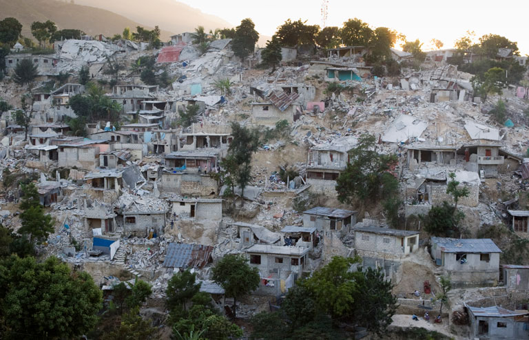 Es ist der fünfte Tag, nachdem in Haiti die Erde bebte. Schwarzer Rauch steht über der Hauptstadt Port-au-Prince. Zertrümmert liegt sie im Halbrund der Berghänge. Brände brechen in einzelnen Ruinen aus. Die Innenstadt ist wie ausgelöscht. Die Institutionen des Staates gibt es nicht mehr. Die Überlebenden schauen aus ihren Zelten auf den zusammengebrochenen Präsidentenpalast, die Reste der Ministerien, die Ruine der Kathedrale, die den Erzbischof unter sich begrub. Der Präsident, heißt es, der nach dem Beben ebenfalls für kurze Zeit als tot galt, steht unter Schock. Seine Frau spricht in der Öffentlichkeit für ihn. Die UN ist von der Katastrophe schwer getroffen, auch viele internationale Hilfsorganisationen. Ihre Büros sind zum Teil zusammengebrochen, Helfer sind gestorben. Die meisten haben ihre Posten verlassen, um nach den eigenen Familien zu schauen. Menschenmassen wälzen sich durch die Schutt bedeckten Straßen. In den Überresten der Stadt suchen sie die Lebenden. Immer häufiger finden sie die Toten.