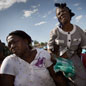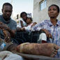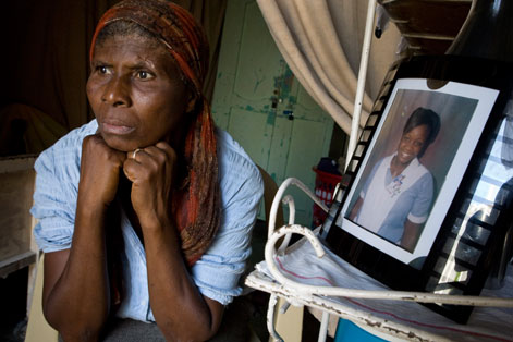 Elicene Dumerjuste, 48, trägt eine Plastiktüte frischer Kleider. Sie will sie nach haitianischem Brauch der Toten anziehen. "Mein eigenes Kind", kichert sie und schaukelt hektisch mit dem Oberkörper. Pierre legt seine Hand auf ihre Schulter. "Deine Tochter ist wahrscheinlich schon beigesetzt." Dann wendet er sich wieder den Toten zu. Dumerjuste, die als Schneiderin in einem Krankenhaus arbeitet, läuft hinter ihm her. "Schau noch mal", ruft sie. "Sie heißt Manu." 25 Jahre wäre die Tochter nächsten Dienstag geworden, eine Krankenpflegeschülern, verschüttet im zweiten Stock ihrer Berufsschule mit 50 anderen. Zusammen mit ihrem Mann sucht die Mutter in allen Leichenschauhäusern. Ihre Gesichtsmuskeln zucken, sie krampfen, von Stirn über Wangen zum Kinn.