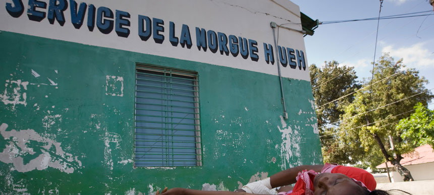 Wir brauchen Wasser, um den Platz zu reinigen!", klagt Pierre. "Wir brauchen Gummistiefel. Wir brauchen Mundschutz!" Der Sohn eines Kaffeekaufmanns ist von der Krankenhausverwaltung vor einem Jahr zum Chef des Leichenhauses gemacht worden. Ein elffacher Großvater, kurz vor seiner Rente, mit sanftem Druck. Denn Pierre ist ein beflissener Verwalter. Doch jetzt fühlt er sich im Stich gelassen. Die Toten seien ja immer noch Menschen, sagt er, würdevoll müsse man sie behandeln. Nach dem Beben habe er auf Anweisungen des Justizministeriums gewartet, die Leichen in Massengräbern beizusetzen. Aber es habe keine Order gegeben. Konnte keine geben. Das Justizministerium, nicht weit weg, ist nur noch ein Haufen aus Steinen und Stuck.