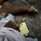 Halt suchend presst er draußen die Hand an die Wand, stützt sich an sie bei jedem Schritt. Unter seinen Füßen ist der Boden mit einem Brei überzogen, einer schmierigen schwarzbraunen Masse, in die der Mann bis über die Schuhsohlen einsinkt. "Es kann sein, dass wir in diesen Tagen Fehler machen", sagt er."Ich kann das nicht ausschließen. Ganz sicher gab es Verwechslungen." Der Direktor des Leichenschauhauses sieht kurz vom Boden auf. Er schätzt den besten Weg über das Krankenhausgelände ab und blickt vor sich auf Hunderte verwesende Leiber, neben- und übereinander gelegt. Sie strecken ihre Arme aus, sitzen breitbeinig, sind mit den Rücken aneinandergelehnt. Ihr Gedärm platzt aus den Bäuchen und ergießt sich überall auf dem Boden als Morast.