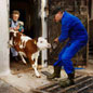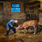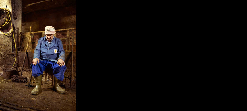 Die Neonröhre flackert und verlischt, flackert erneut und wirft gleißendes Weiß auf Kühltank und Melkmaschinen. Die Arbeit beginnt ohne Worte. Anneliese sieht nach den Kälbern, so, wie sie es in den letzten 60 Jahren getan hat. Vater und Sohn drücken sich je ein Melkgestänge an den Körper. Rolf kümmert sich um die schwierigeren Tiere, die angekettet gerne mal auskeilen, kniet unter ihnen, massiert die Zitzen, stützt den Kopf an ihren Bäuchen. Melken ist Nahkampf, zweimal täglich, ein hartes Schieben und Drängen. Es spritzt zwischen den Tierleibern, der Urin in Sturzbächen, ausquellender Kot und Milch, wenn die Saugstutzen nicht glatt aufsitzen. Zu diesem Zeitpunkt besitzen Breuningers noch 29 Kühe, das sind sieben weniger als vor einem Jahr. Ihre Zahl verringert Rolf nur allmählich, das letzte Heu will er verfüttern, die letzten Kälber geboren bekommen. Die Sparsamkeit bewahrt er sich bis zum Schluss. Das ist die eine Wahrheit. Die andere ist, die Breningers sehnen das Ende nicht herbei.