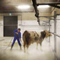 "Vergiss nicht, mich danach anzurufen", bittet ihn Ende Januar Anneliese, als er mit der Kuh Henry vom Hof fährt. Die ist weiblich, aber nach ihrem Vorbesitzer benannt. Die besten Tiere, die nicht im Schlachthof enden sollen, bringt er zur großen Rinderversteigerung im 20 Kilometer entfernten Ilshofen. Bisher hatte er dort immer nur gekauft, jetzt will er verkaufen. Die Faust um die Leine zieht er "Henry" in einen Tempel der Subventionswirtschaft, die "Hohenlohe Arena" mit ihren riesigen Hallen für bis zu 3000 Zuschauer. Der Züchterverband der baden-württembergischen Rinderunion hat sie vor vier Jahren für acht Millionen Euro auf die grüne Wiese gebaut. Drei Millionen bezuschusste das Land. "Die waren damals von viel zu hohen Tierzahlen ausgegangen", sagt Rolf. Er reiht sich nervös in die Schlange der Verkäufer ein, mit Wollmütze und dem blütenreinen Blaumann, den ihm Mutter mitgab. Kuh für Kuh, Los um Los, rückt er in der Schlange auf, die Stimme des Auktionators hallt immer lauter herüber.