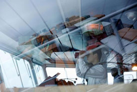 „Der Mensch ist überfordert,“ sagt der Geschäftsführer des Altenwerder Terminals, Heinrich Goller, und betrachtet aus seinem Bürofenster die ablegende „Qingdao“. Der Herr der Maschinen ist noch nicht zufrieden mit dem Automatisierungsgrad. „Der Mensch kann die notwendige Geschwindigkeit nicht mehr leisten. Er ist bei vielen Tätigkeiten bei uns am Limit.“ Noch mehr Effizienz muss heraus geholt werden, sagt er. „Die letzten zehn Prozent.“
