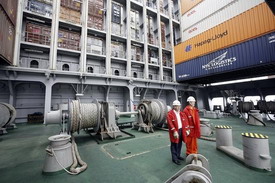 Es fehlt bundesweit an Kapitänen und Schiffsoffizieren. Die Lotsenbrüderschaften an Weser und Elbe klagen über Unterbesetzungen. Reeder zahlen Nautiker weit über Tarif, locken mit vielen Vergünstigungen. Dumm, dass die Kapitänsschule in Hamburg gerade zugemacht wurde. Die Werften weltweit sind für Jahre ausgebucht, hunderte zusätzlicher Containerfrachter stehen in den Auftragsbüchern. „Es gibt immer noch nicht genügend Kapazitäten“, klagt Astrid Hartje, Niederlassungsleiterin der OOCL, unter deren Flagge die Qingdao fährt. „Wir kriegen am Kai in China längst nicht alle Container mit.“ Die Liniendienste in Hamburg hätten den Luxus, nur den Telefonhörer abnehmen zu müssen. „Wir brauchen keine Werbung.“ Voll fahren ihre Frachter nach Deutschland, für 1050 Dollar der Container, leer fahren sie zurück, für nur 150 Dollar die Box. „Uns gehen die Leercontainer in Fernost aus.“ Der Hafen, daraus machen die Reeder keinen Hehl, floriert auch deshalb, weil viele Fabriken nicht mehr in Deutschland, sondern in Asien stehen. Ein Krisenprofiteur. Bis 2015 soll sich das Frachtaufkommen noch einmal mehr als verdoppeln.