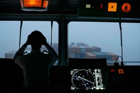 Wie Käfer zum Licht zieht es in der Deutschen Bucht die Schiffe zur Elbmündung. Enger und enger rücken sie als grüne Punkte auf dem Radarbild, als Schatten im Nebel gleiten sie dicht einander vorbei. Von nun an werden Fehler kaum mehr verziehen. Der Weg nach Hamburg ist ein Nadelöhr, 110 Kilometer Elbe, schmal und ohne Ausweichstellen. Es prasselt jetzt Funksprüche auf die Kommandobrücke, sie jagen einander im Äther, auf fünf Kanälen. Drei Mann bedienen sie gleichzeitig. „Der schickt uns auf die Sandbank“, faucht Chon plötzlich, als ihm der Lotse kurz hintereinander zwei sich widersprechende Kurse durchgibt. Doch die letzte Ruderangabe hatte der Lotse schon für ein anderes Schiff bestimmt. Das Steuerhaus der Qingdao, in der man eben noch eine Nadel hatte fallen hören können, füllt sich mit dem Lärm von Kurskorrekturen, Diskussionen von Kapitänen anderer Schiffe, wer überholen darf, wer nicht. Akzente von Russen, Chinesen, Amerikanern. Kapitän Chon, klein und untersetzt wie Buddha, sonst auch ganz die Ruhe, ist jetzt nervös. Das Hamburg-Syndrom, wie er es nennt. Der Malaysier fährt mit 322 Meter Länge eines der größten Containerschiffe der Welt, Fleisch hat er geladen, Fernseher, Säure, H & M-Kleidung, Zulieferteile für den Maschinenbau, Blumenzwiebeln, alles, was China für den Export produziert, und drei Tage Verspätung hat er schon. In ganz Mitteleuropa warten Kunden auf ihn.
