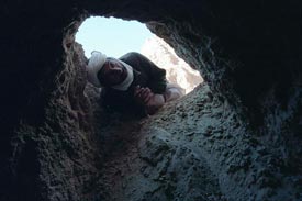 Die Erde haben sie gelernt wie ein Buch zu lesen, detailreich, oft auf Jahrzehnte genau, und wie geschändet ist diese Erde! Die jungen Briten ringen um Fassung. Die Berghänge rund das Minarett sind durchlöchert als hätte eine Termitenbrut in ihnen gehaust. „Das Minarett war Zentrum einer großen Stadt“, glaubt David Thomas. „Das war vermutlich die Hauptstadt der Ghoriden, eines der größten Imperien Asiens.“ In Teams klettern sie quer über den Trümmerhang. 124 Löcher werden sie in den nächsten zwei Wochen dokumentieren, eine Pappkarte mit Nummer deponieren sie in jeder untersuchten Höhle. Die exakte Lage der Gruben im Berg misst ein Theodolit. Kartografen der Gier. Die Nachwuchsforscher wollen in Jam retten, was zu retten ist, bevor nach ihnen wieder die Plünderer kommen.