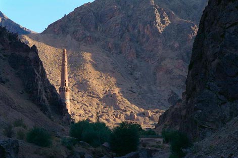 Der schmale Schatten auf Luftaufnahmen, der Piloten irritierte, erwies sich als das zweithöchste Ziegelminarett der Erde. Der Turm zu Jam, 12. Jahrhundert. Ein Monolith, als sei er vom Himmel herab gefallen, ragt in der Schlucht des Hari Rod auf. Jam ist vollkommenste islamische Baukunst, ebenmäßige 65 Meter hoch, prachtvoll verziert, eine gigantische Nadel wie aus Stein gegossen, hier in fast menschenleerer Einsamkeit. Es gibt nur hachelbesetztes Gebirge in diesem Teil des zentralen Hindukuschs, Steilwände und einen reißenden Fluss, dazwischen kaum Platz für einen Pfad, schon gar nicht für eine Straße. Diese extreme Abgeschiedenheit ist der Grund, warum ein Gebäude, imponierend wie der Kölner Dom, für fast ein Jahrtausend in Vergessenheit geraten konnte. Die Unesco erklärte ihn zum Weltkulturerbe. Dorthin, in einen der unzugänglichsten Teile des Hindukusch, hat sich das Team des britischen Archäologen David Thomas aufgemacht. Die jungen Idealisten, die sich mühsam die Finanzierung ihrer Expedition zusammen bettelten, graben nicht aus: Sie wollen erforschen, wie sehr Jam bereits geplündert wurde.