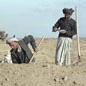 Qahar schultert am nächsten Morgen wieder die Schaufel. Er gibt nicht auf, er lässt sich nicht gehen wie viele der Männer, die den ganzen Tag im Schatten der Gassen kauern. „Ich versuche zu arbeiten. Ich helfe mir selber.“ Er nimmt von seiner Frau den Beutel mit Thermoskanne und Fladenbrot. Mit Zakir geht er anderthalb Stunden den täglichen Weg zu den Toten, durch abgestorbene Äcker und Weiden. „Allah“, sagt er, „ist uns noch etwas schuldig.“