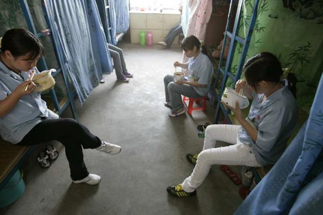 Die Fabrikarbeiter von Guangdong haben keine Bürgerrechte, die meisten halten sich nur mit einer vorläufigen Aufenthaltserlaubnis in der Provinz auf. Werden sie entlassen, erlischt sie, und gelten sie plötzlich als illegal, droht ihnen die Deportation in ihre Herkunftsregionen. China entledigt sich auf diese Weise Arbeitslosigkeit und Verelendung in seinen Boomtowns. In der Konsequenz haben 90 Prozent der Einwohner des Industriereviers keinen Anspruch auf Sozialversicherungen, medizinische Versorgung und öffentliche Schulen. Die Kinder der Fabrikarbeitern besuchen „illegale Schulen“, deren Niveau erbärmlich ist. „Wir sind die Geiseln der Fabrikherren“, sagt Chao Yu, der an diesem Abend mit einer Stimme zerbrechlich wie aus Glas erzählt. Immer wieder stockt er, bis nur noch einzelne Worte kommen. Er hat den Tag über nichts getrunken. Es gibt kein Wasser in seiner Abteilung, und er darf sich nicht vom Band entfernen.