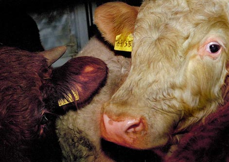„Wenn du Vieh fährst, kannste alles fahren“, plaudert der Trucker beschwingt. Er schimpft über Bauern, die vor Abfahrt noch kräftig füttern, um das Verkaufsgewicht zu heben. „Und wir müssen dann zwei Stunden lang die Scheiße putzen.“ Schlimm sei es bei den holländischen Kollegen. Die prügelten regelmäßig 60 statt der erlaubten 40 Tonnen Rinder auf die Ladefläche. „Wenn die zehnmal fahren und einmal kontrolliert werden, lohnt sich das.“ Pferde könne er nicht fahren, sagt er. „Bei Pferden stünden mir Tränen in den Augen. Ich bin mit denen aufgewachsen.“ So geht es ihm wie den meisten Menschen. Katzen sind Schätzchen, Rinder sind zum Schlachten da.