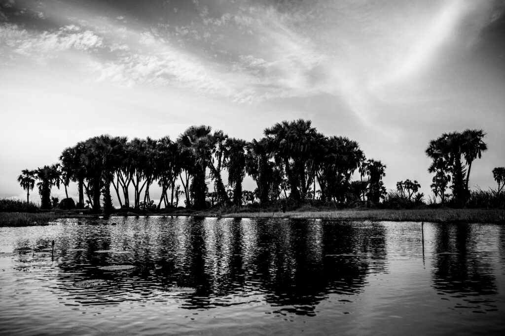 Nur ein einziger Fisch. Er liegt auf dem Boden des Bootes und windet sich im Todeskampf. Er öffnet sein Maul, schnappt, reißt es auf, als wolle er das Leben erzwingen, erlahmt dann, wird ruhiger, bis er reglos ist. Das Kind, das das Boot durch eine endlose Wasserlandschaft steuert, ganz allein, hält sich mit Mühe aufrecht. […]