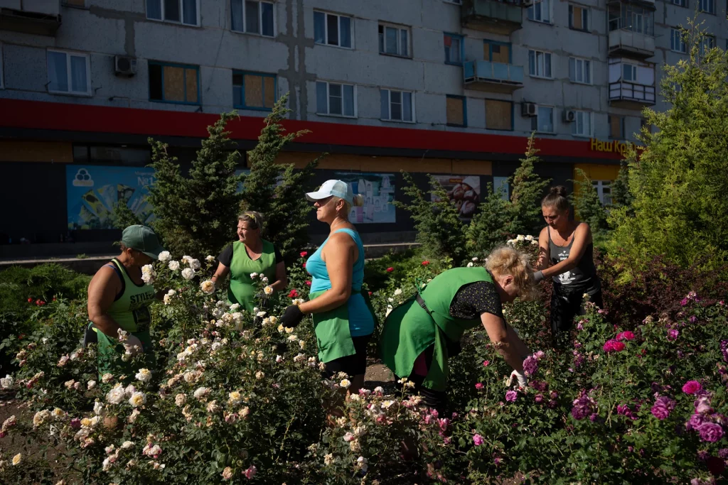 Der Reihe nach fragt Padun die Berichte der Abteilungsleiter ab. Fast alle sind neu in ihren Funktionen, nur wenige Mitarbeiter sind ihm von früher geblieben. Da ist Tatjana, die Direktorin des Schulamts. Arkadi, der Kämmerer, der fortwährend seine Witze erzählt, Witze, mit denen er das Geräusch der Bomben weglacht, Witze meistens über Autos und Autopannen. Andrej, der selten lacht, einer der Jüngsten, bemüht, emsig, immer ernst, zuständig für die technischen Betriebe, für Wasser, Abwasser, alle Liegenschaften im Stadtbesitz. Da sind die Kinderschutzbeauftragte, die Leiterin des städtischen Krankenhauses, der Direktor des kommunalen Beerdigungsunternehmens, der in der Stadt den teuersten Privatwagen fährt. Und natürlich Sveta, die Kulturamtsleiterin, die die Social-Media-Seiten von Kurachowe zum Blühen bringt, mit Fotos von Rosen. Rosen am Montag, Rosen am Dienstag, Rosen! Svetas Fotos zeigen fast nie Ruinen. „Warum sollten wir“, sagt sie. „Das bringt noch mehr Schmerz.“